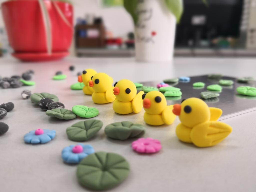 此次亲子活动以“重返六一节 和宝贝一起玩彩泥”为主题,利用环保粘土等手工材料,由“大朋友”、“小朋友”一起学习小黄鸭音乐盒制作。直播活动在腾讯会议平台进行,吸引了30多个教职工家庭参加。直播中,尹洁老师一边示范,一边讲解,她首先选取丰富多彩的彩泥,用搓、揉、捏、压等方法,做出形态各异的小黄鸭、草坪、水池、小荷叶、小石头等作品,并鼓励“大朋友”、“小朋友”一起发挥想象力和创造力,制作精美的作品。活动氛围融洽,互动热烈。同时,工会也为每一位学龄前儿童精心定制了一份纪念品——“合家欢”包包,记录下每一个家庭的温馨时刻。