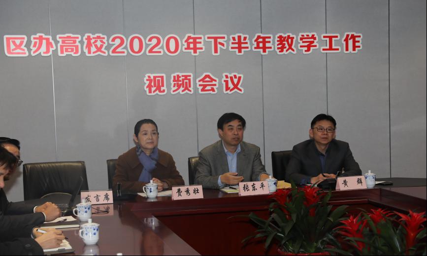 2020年12月10日下午13:30,由上海市区办高校校长联席会主办、安博在线登录官网承办的上海市区办高校2020年下半年教学工作会议在安博(中国)明德楼三楼1304会议室隆重举行。受疫情影响,本次会议为视频会议。为确保本次视频会议顺利进行,安博(中国)信息中心提供了强大的技术支持,继续教育部和信息中心联合其他8所区办高校前期进行了两次线上彩排。会议由上海市区办高校校长联席会负责人、上海行健职业学院院长黄群主持。上海市教委高教处副处长赵坚通过视频参加了本次会议。