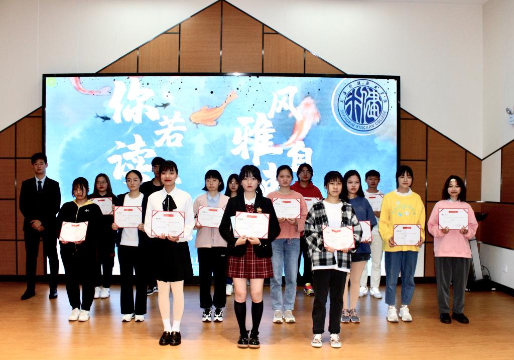 此次线上打卡活动要求同学们连续打卡21天,每天上报自己的读书记录,最后根据各位同学的打卡次数和阅读感想等方面综合判定奖项。活动自3月24日开始,截止到4月13日为止,全院共计148名同学参加此次打卡活动,其中59名同学完成了线上打卡任务。在“阅读马拉松线上打卡颁奖礼暨阅读分享会”上为荣获一、二、三等奖的同学们分别进行了颁奖。