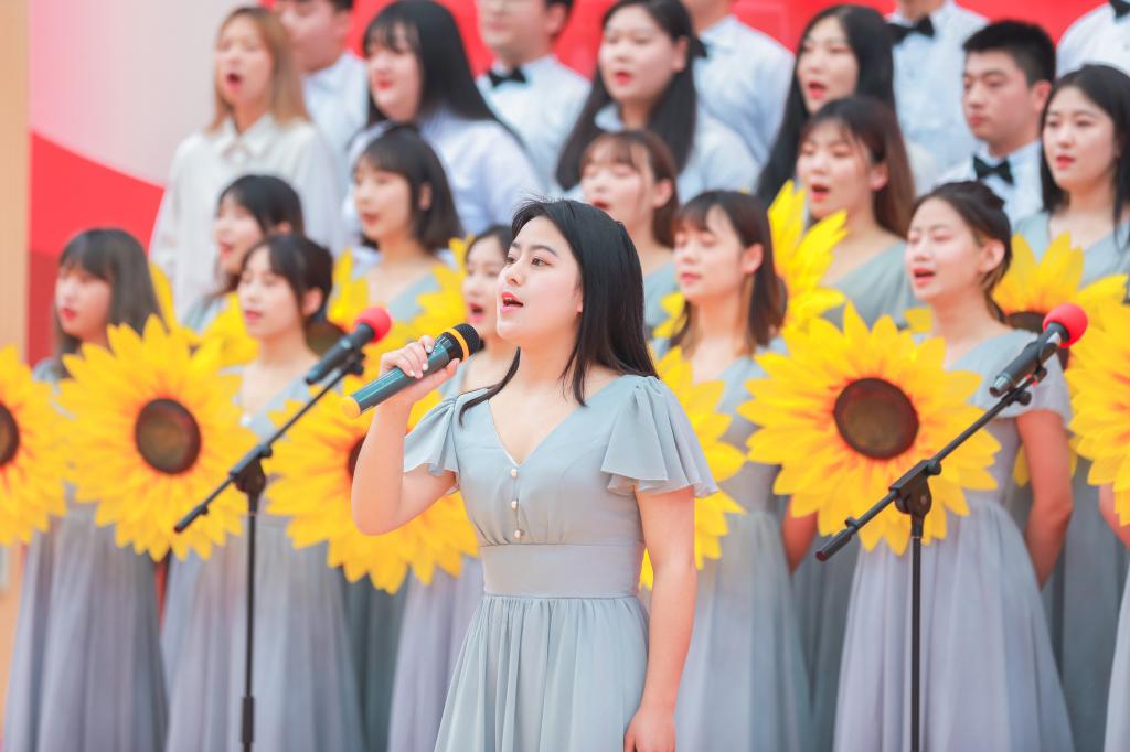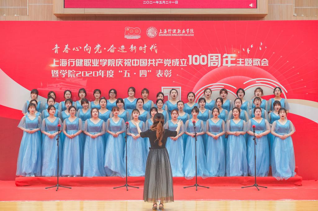 学前教育系的同学们用活力激情的节拍带来《青春舞曲》。经济管理系的同学们演唱的《在灿烂阳光下》无不体现出党领导中国人民走过无数的风雨历程。应用艺术系的同学们演唱的《歌唱祖国》重新燃起了在场每位同学的爱国热情。祖国是一首抒情诗,商务外语系的同学们演唱的曲目《我爱你中国》不禁让同学们深深呐喊:我爱你,中国!信息技术与机电工程系同学们带来的曲目《新征程》唱出了在这个继往开来的胜利时代,青年学子应绘就梦想的新蓝图、用新的作为闪耀新征程。在这个具有特殊意义的历史时刻,各院系师生汇聚在这里,用歌声唱出对党的热爱、唱出对祖国的祝福、唱出对新时代的向往;既展现了良好的精神风貌,又体现出全校师生听党话、跟党走的坚定信念。