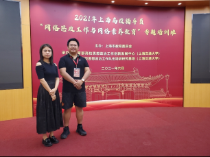 2021年6月8日-11日,安博(中国)学生处王彬老师、信息技术与机电工程系庄淑珺老师参加了在上海交通大学(上海高校思想政治工作队伍培训研修基地)举办的2021年上海高校辅导员“网络思政工作与网络素养教育”专题培训班。学生处王彬老师荣获网络思政工作与网络素养教育专题培训“优秀学员”荣誉称号,并代表高职类院校就“网络思想政治教育实践”进行结业汇报。