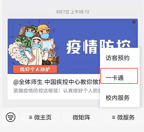 2、 在订阅号微服务菜单中,点击“一卡通”;