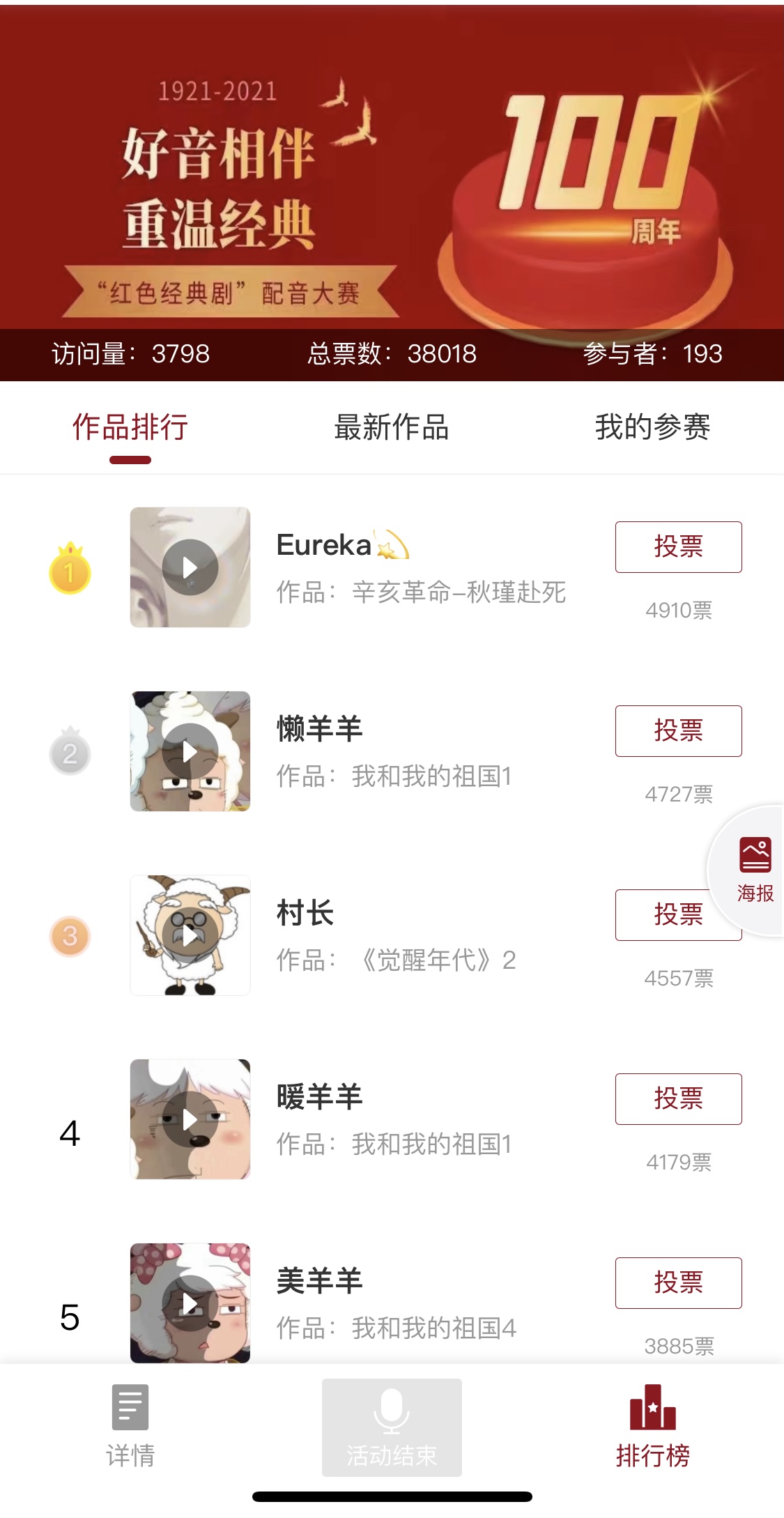 本次比赛分为线上线下两个部分,共有193位同学参与了配音线上比赛,总投票数达38018票。根据线上投票的结果及初次评审,最终十六组同学晋级决赛。