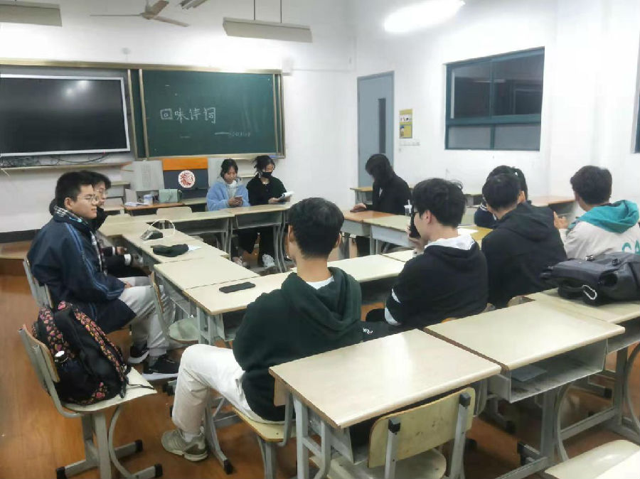 李白用一句“举头望明月,低头思故乡”抒慨无限思乡之情,文天祥以一句“辛苦遭逢起一经,干戈寥落四周星”道尽国仇家恨之痛......诗词,是唐宋亘久的韵味所在,是当下回首的温柔之存。为共同品味诗词意蕴,感受古韵妙趣,文学社全体成员于11月8日傍晚,在行知楼7211室,开展“传诗词魅力·品诗词之美”主题活动。