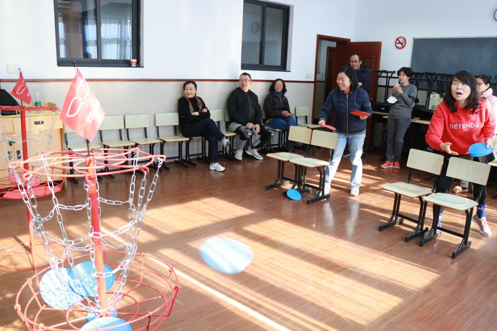 本次会议活动由继教部策划组织,根据防疫要求,年度总结会结合各街镇社区教师年终考评分组完成。素质拓展活动当天分为上下午两场,每场人数限制50人以下,拓展项目有飞盘比准、抖球达人、大脚丫竞速,每个项目固定一间教室开展,参与人员分批次参加。
