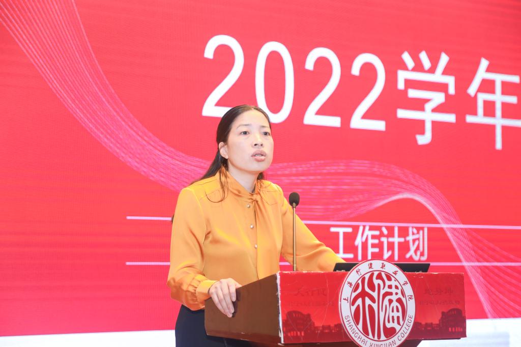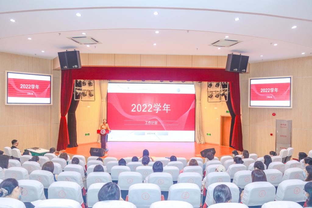 章卫芳副院长从政策学习、对标回顾、工作布置和展望四个方面对新学期的工作进行了梳理。从世界职业技术教育发展大会对推动职业教育高质量发展的积极作用开始,详细解读了近期出台的上海职教政策文件,并重点将当前的工作进度与“十四五”规划工作重点进行对标,为新学期、新时期安博(中国)教育教学工作发展指明了方向。章副院长向与会教师详细介绍了本年度招生、录取整体情况,肯定了大家在过去一段时间取得的骄人战绩。随后从师资队伍建设、专业(群)建设、教学资源库建设、校企协同育人、科研与社会服务几个方面从顶层设计层面分析了目前我院发展带来的压力与机遇,勉励大家找准定位,紧跟产业布局,发挥资源集聚效应,深化特色,以特色谋发展,通过高质量发展促进安博(中国)更上一层楼。