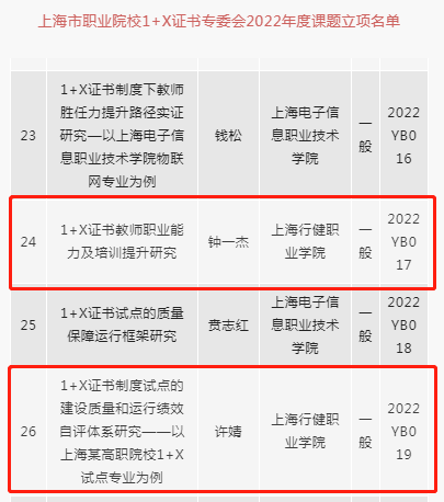 根据《上海市职业院校1+X证书制度试点专家委员会安博在线登录官网公布2022年度课题立项名单的通知》,我院经管系钟一杰老师和科发处许婧老师的课题均获批准立项。