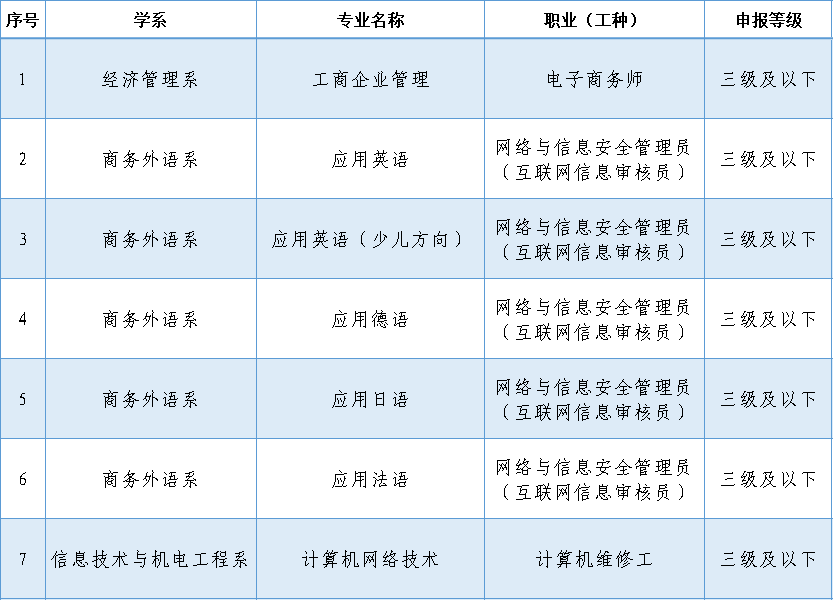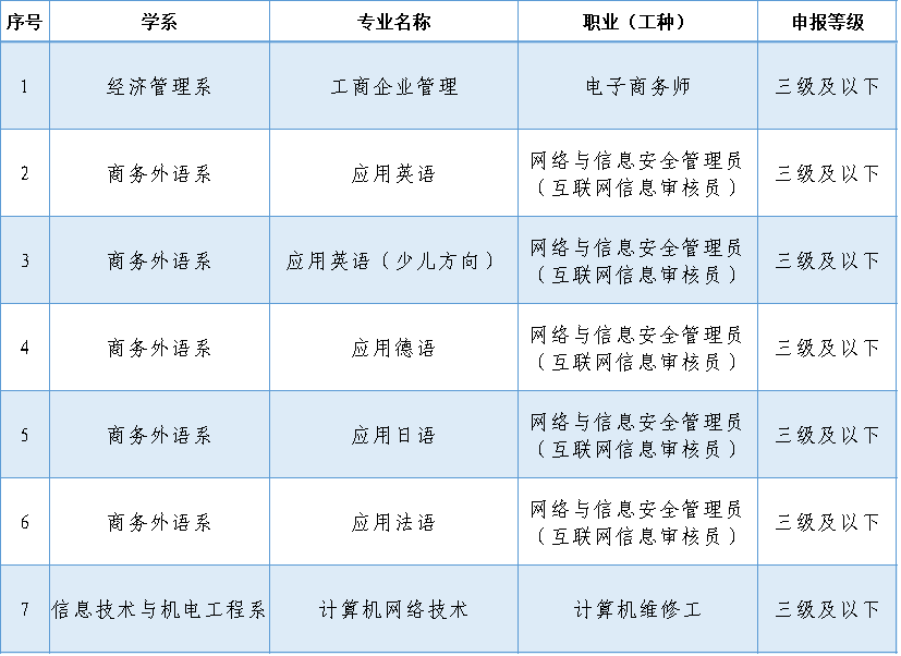 根据沪人社【2021】401号通知精神,经专业评估,安博(中国)以经济管理系、商务外语系和信息技术与机电工程系7个专业通过论证,获批职业技能评价项目资质。
