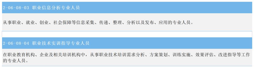 相较2015年《大典》,2022年《大典》增加1个职业——职业技术实训指导专业人员,而在第四大类“人力资源服务人员”小类(编码4-07-03)中也增加了1个工种“职业技能训练师”,这反映出国家对于技术技能人才培养的重视。