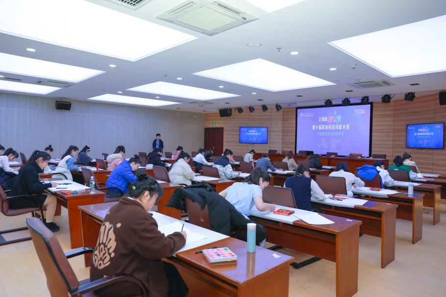 为更好地提升学生综合职业能力,根据幼儿园保教工作基本规范,结合当前幼儿园保教工作现状与发展需要,本次大赛分为幼儿园保教活动课件制作、保教活动分析和幼儿教师综合技能测评、命题画、片段教学(技能展示)和幼儿园教育活动设计五个赛项。比赛现场,各位选手切磋技艺、绽放风采。各参赛院校领队教师可以在教师休息室现场观摩学生比赛实况,各院校师生也可以登录上海高职公众号,以观看直播的方式参与此次精彩的比赛。市教委装备中心的领导、裁判长及督导均对我院本次赛事承办工作高度赞扬,肯定了我院组织本次赛项有利于进一步地提升上海高职院校学前教育专业的影响力,并对我院赛事组织服务水平和一对一志愿者引导参赛选手的人性化服务表示满意。