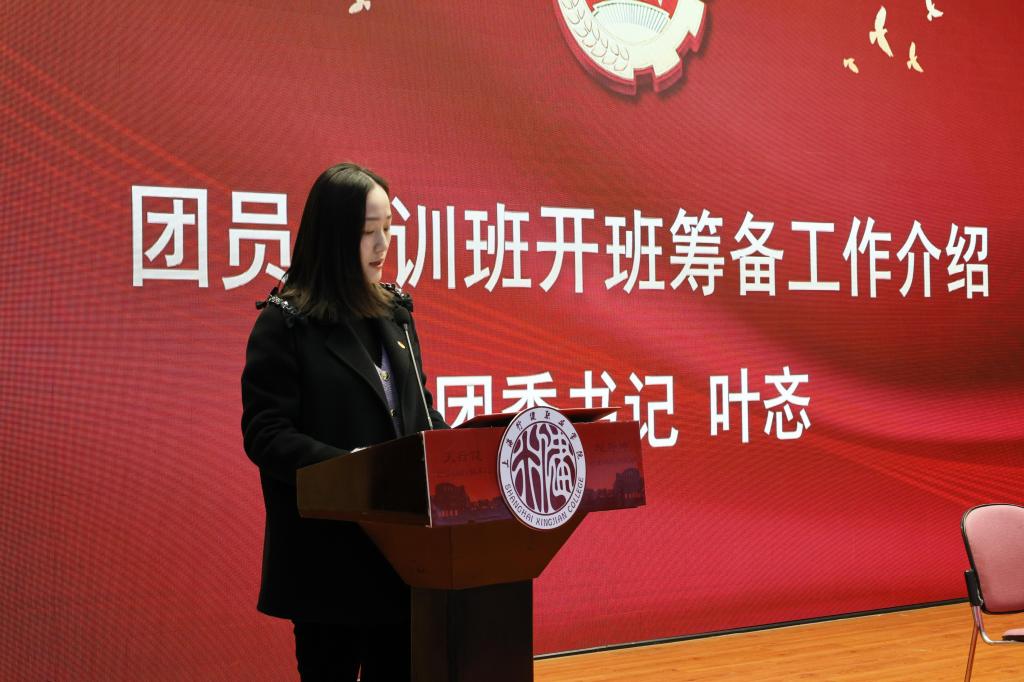 本期培训班开班仪式共分四项议程,会议在国歌声中拉开帷幕。学校团委书记叶忞就本次培训班的背景、意义及大致安排作开班筹备工作的情况介绍。今年是全面贯彻落实党的二十大精神的开局之年,也是共青团紧跟党迈上新的百年青春征程的起步之年,她号召学员们要从讲政治的高度切实增强知识理论学习的主动性和自觉性,坚持脚踏实地、学以致用,争做有理想、敢担当,踔厉奋发、笃行不怠的新时代青年模范。