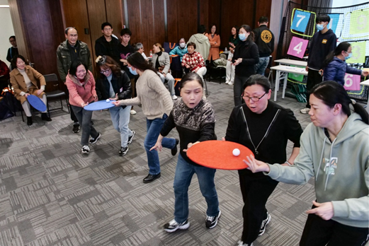 总结大会结束后,社区教师参加了精彩有趣的素质拓展活动。此次素质拓展活动分为个人项目和集体项目,个人项目有“飞盘积分赛”、 “高尔夫大赛”,集体项目有“夹蛋接力”和“十指同心”。现场的老师们积极参与,欢声笑语不断,既锻炼了大家的团队协作能力,还增强了团队的凝聚力,为更好地推进社区教育工作奠定了基础。