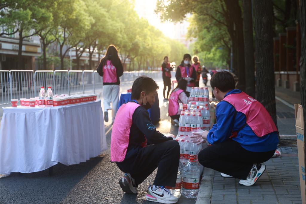 在长达五个小时的服务时间里,志愿者们始终坚守在工作岗位上,以高昂的服务热情、严明的工作纪律为赛事提供志愿服务。检录区的志愿者们耐心服务、精准引导;沿途服务站的志愿者们时刻关注赛道上每个选手的状况,并且不停地呐喊加油;补给站的志愿者热情给选手加油递水;终点的志愿者用热情化解了每一位参赛跑者的疲惫。从赛前直至赛事结束,志愿者们精力集中,以专业热情的服务,为赛事保驾护航,成为大赛一道靓丽风景线。