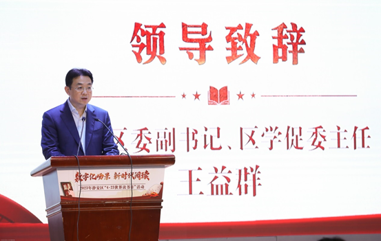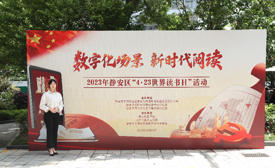 值第28个世界读书日到来之际,为进一步学习贯彻党的二十大精神,酿厚全民阅读氛围,4月21日下午,2023年静安区“4⠂23世界读书日”活动在江宁路街道社区党群服务中心隆重举行。本次活动由区学习型城区与终身教育促进委员会办公室、区新时代文明实践中心办公室、区语言文字工作委员会办公室主办,学校作为承办单位之一。区委副书记王益群,区委常委、宣传部部长莫亮金,市教委终身教育处处长闫鹏涛、市学指办、区学促委各成员单位有关领导、以及全区各界读书爱好者共120余人参加此次活动。
