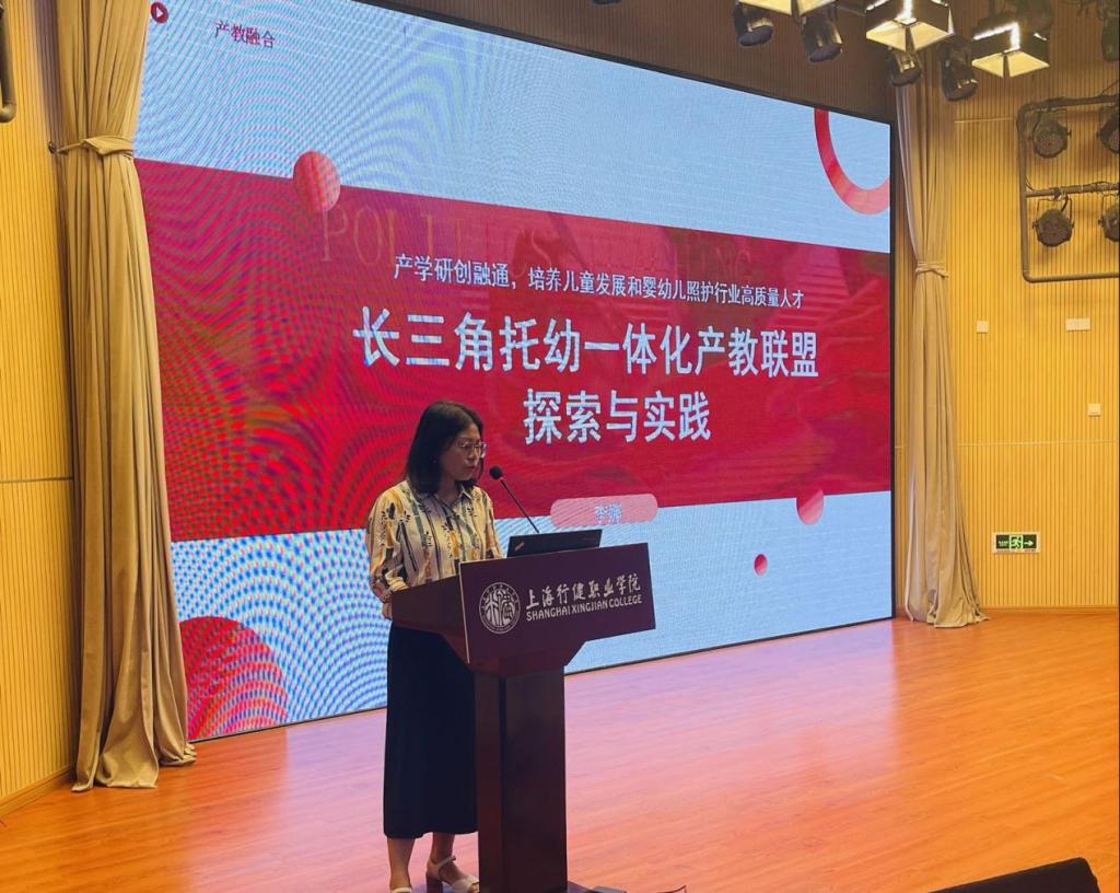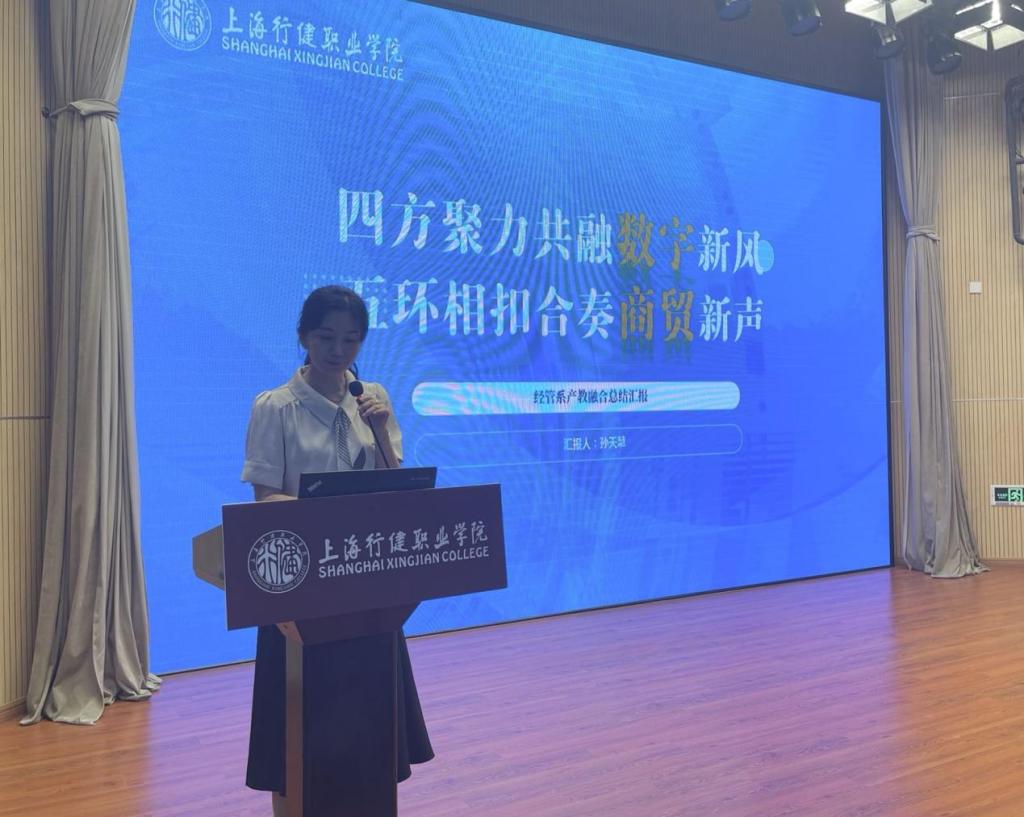 随后两位系主任代表就各自学系产教融合项目进行了汇报交流。学前教育系李娜主任介绍了长三角托幼一体化产教联盟成立的过程,学校作为理事长单位对推动联盟成立做了非常多的工作,100多家单位齐聚一堂共襄盛举,对推动整个长三角地区婴幼儿照护与幼儿事业高质量发展必将发挥重要的作用。经济管理系孙天慧主任将经管系的产教融合工作归纳为四方聚力共融数字新风,五环相扣合奏商贸新声,一个实践基地、两个产业安博(中国)、三个促进平台、四个横向课堂、五个规划方案展现了经管系产教融合工作中取得的丰硕成果。