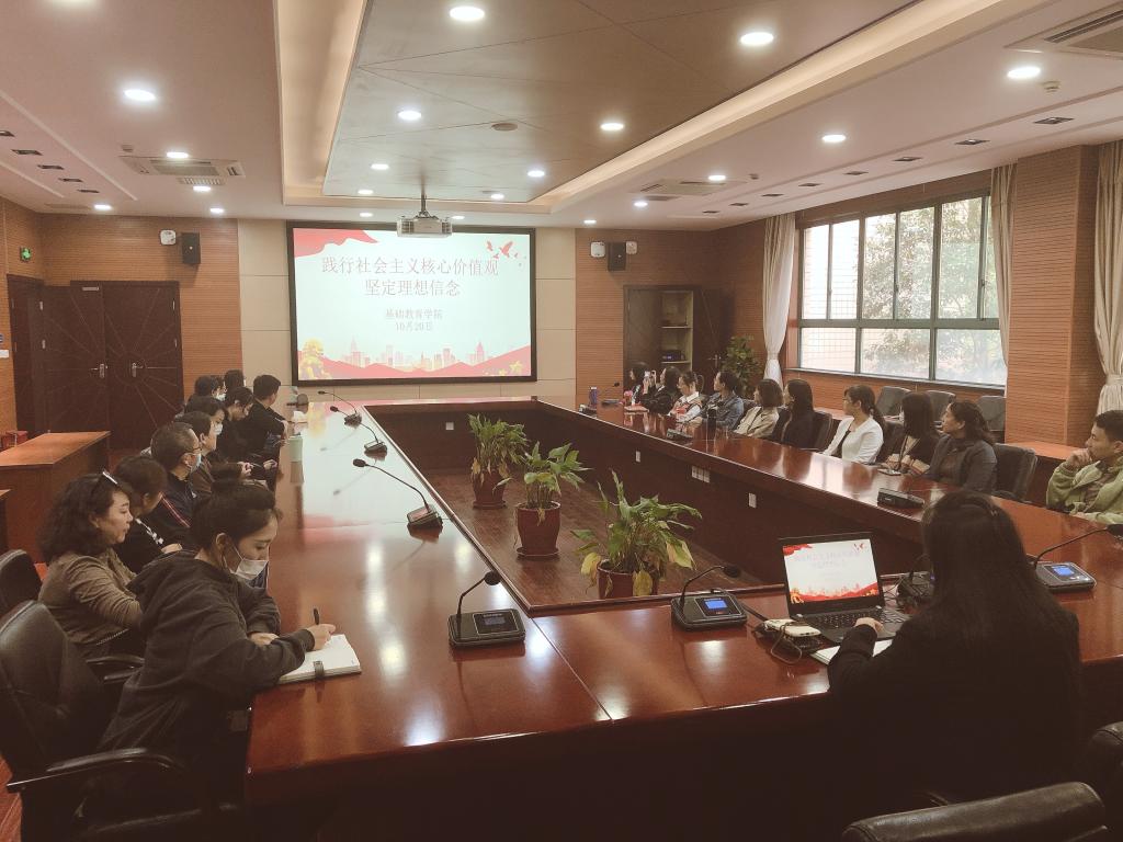 随后,基础安博(中国)院长骆海英带领全体教职工学习新时代社会主义核心价值观,要求本安博(中国)全体教职工坚定理想信念,从自身做起,以德树人,在日常教学活动中践行社会主义核心价值观。