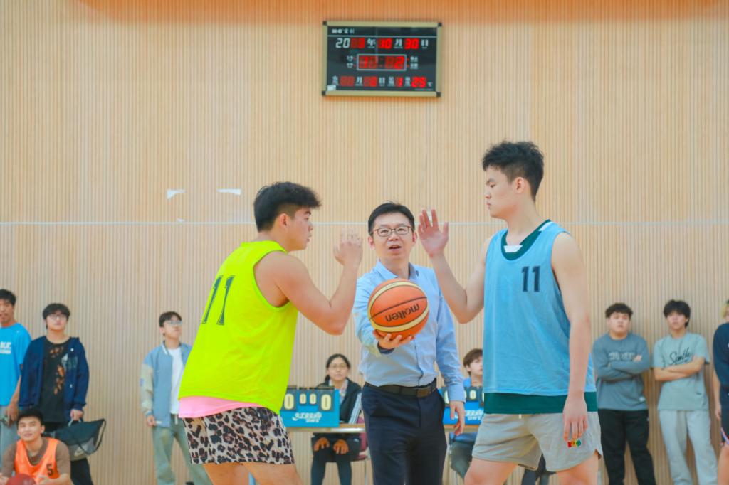 比赛首日,学校校长黄群为双方队员开球,随着裁判的哨响,整个球场就充满了紧张的气氛,球员的激情全都淋漓尽致的体现在篮球场上。比赛进程中,各位队员都全力以赴,用心防守、有力阻挡,越战越勇,显示了他们极佳的心理素质。在场同学也情绪高涨、摇旗呐喊,不时为队员打气、喝彩,气氛热烈。赛场上各队拼抢激烈,带球、运球、投篮等一系列动作潇洒、规范,引来围观老师同学一阵阵喝彩。