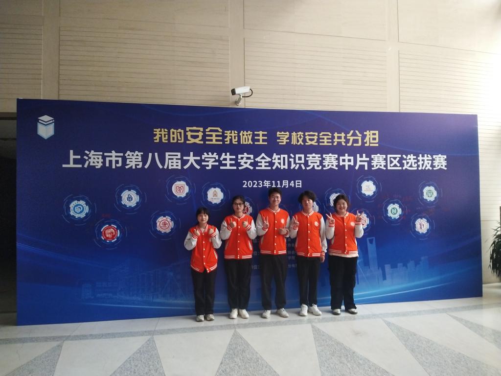 为积极响应上海市教委的号召,以总体国家安全观为统领,不断推动“三全育人”体系下大学生安全教育工作向纵深发展,积极营造良好的学校安全环境和安全育人氛围,形成良好的学校安全文化传统,11月4日,由后保处锁明主任带队,学校选派平安志愿者程恒欣、张莹、韩如男、于伟祥和方栋林等五位同学代表学校参加了在上海交通大学医安博(中国)举办的上海市第八届大学生安全知识竞赛中片区选拔赛。同时,12位23级平安志愿者前往比赛现场为我校参赛选手呐喊助威。