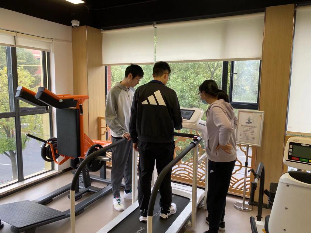 近日,体育教研室党员教师走进彭浦镇社区小镇驿站,开展志愿服务,在社区健身房指导老年人进行科学锻炼,避免锻炼过程中出现不必要的损伤。
