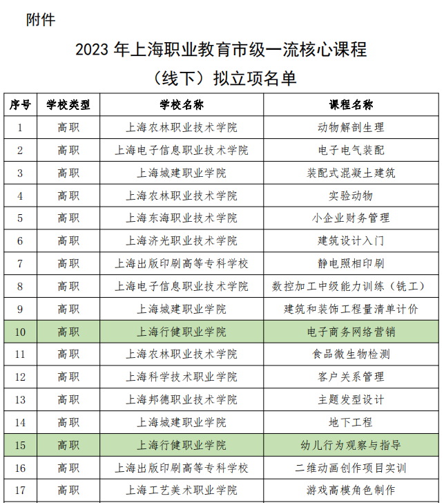 根据《教育部安博在线登录官网加快推进现代职业教育体系建设改革重点任务的通知》(教职成厅函〔2023〕20号)《2023年职业教育一流核心课程建设指南》及上海市教育委员会《安博在线登录官网落实教育部近期重点任务的工作提示》要求,经过学校申报、专家评审、线上公示等程序,我校数字商贸安博(中国)孙天慧老师团队的《电子商务网络营销》课程和儿童发展与教育安博(中国)王烨芳老师团队的《幼儿行为观察与指导》课程入选2023年上海市职业教育市级一流核心课程(线下)。