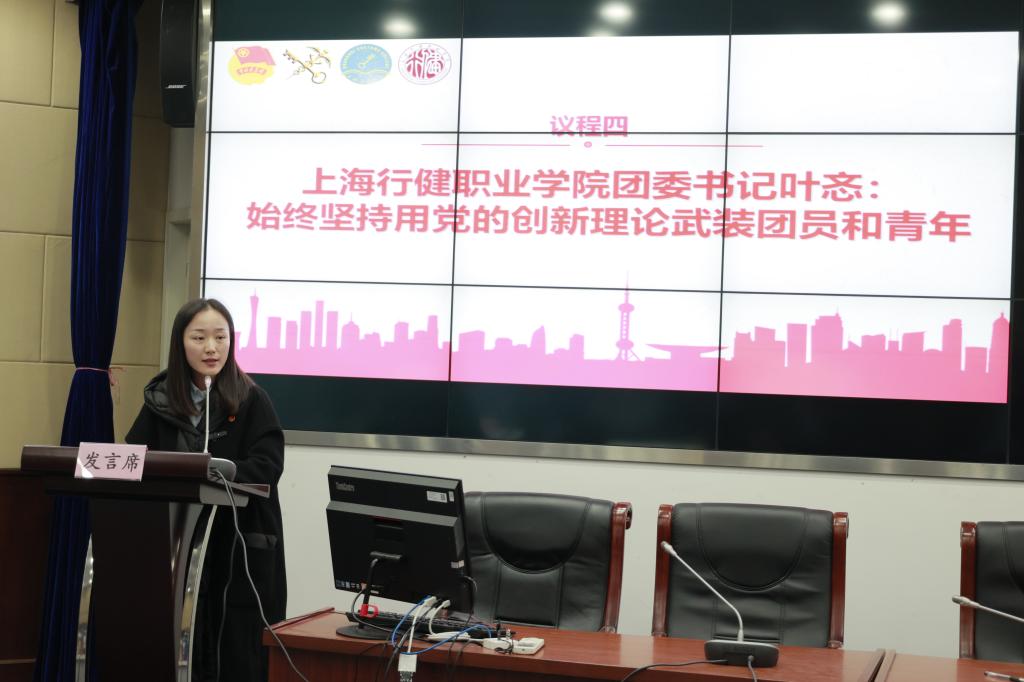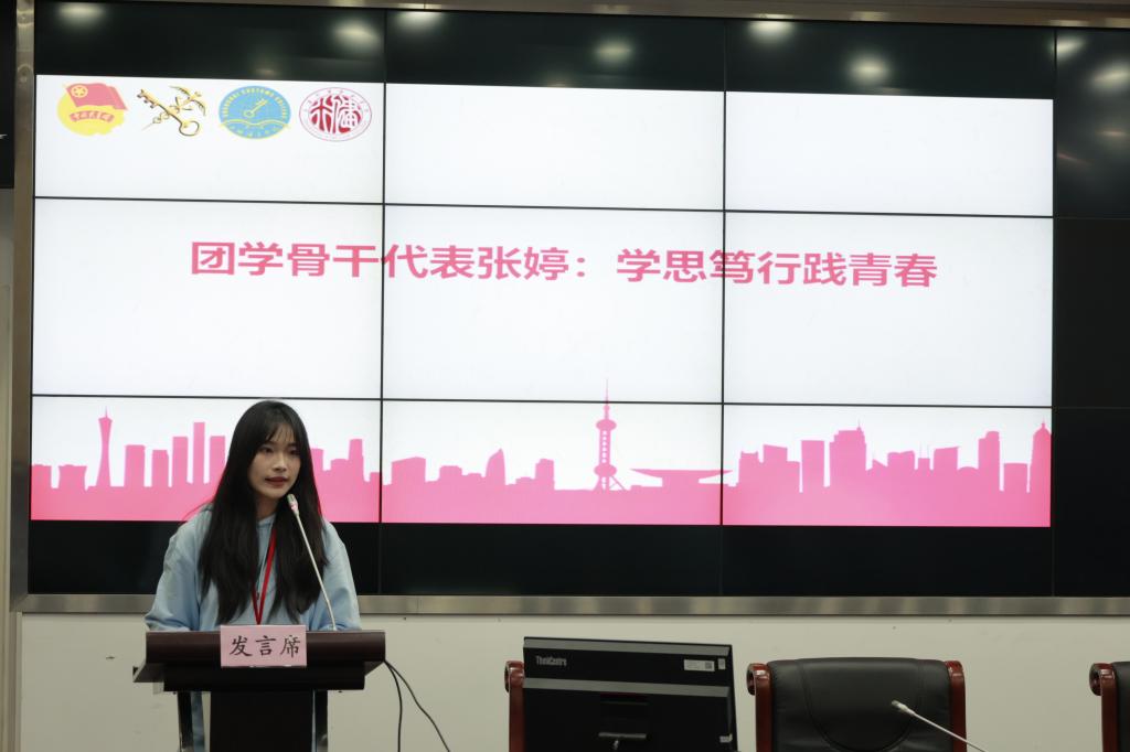 紧接着,我校团委书记叶忞作交流发言,她表示行健团委将切实提高政治站位,努力提升学习成效,以面向团员和青年主题教育以及联学共建为契机,切实把握青年群体思想活跃、需求多元的特征,帮助青年群体解决青年阶段的特殊困难,引导广大团员青年坚定理想信念、塑造坚韧品格。