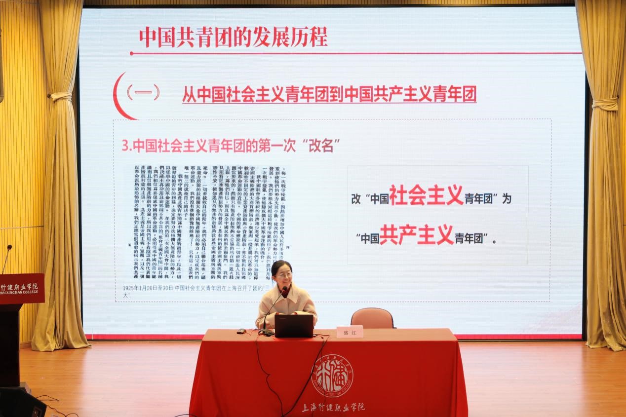接着,马克思主义安博(中国)盛红老师以《学习团史文化 激扬青春力量》为题作授课与交流分享。盛红老师带领入团积极分子们在梳理共青团的发展历程和关键作为的过程中,学习团史文化,激扬青春力量,以期入团积极分子们能够坚定理想信念,为中华民族伟大复兴的中国梦不懈奋斗。随后,学生兼职团委副书记智慧同学就《入团积极分子培养考察登记表》的填写记录对学员们作出明确要求。