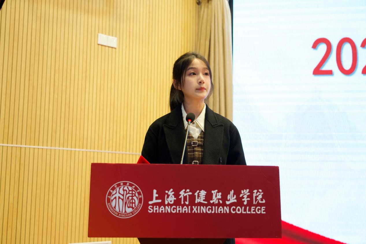随后,外语外贸安博(中国)23级德语班的陈欣如同学作为入团积极分子代表发言。她积极表明了入团的决心,并结合自身实践学习等经历表示未来将树立崇高的理想信念,锐意进取,严格要求自己,砥砺前行,拼搏向前,怀着对团组织无限的热爱与崇敬以及极高的热情投入到后期团课学习中。