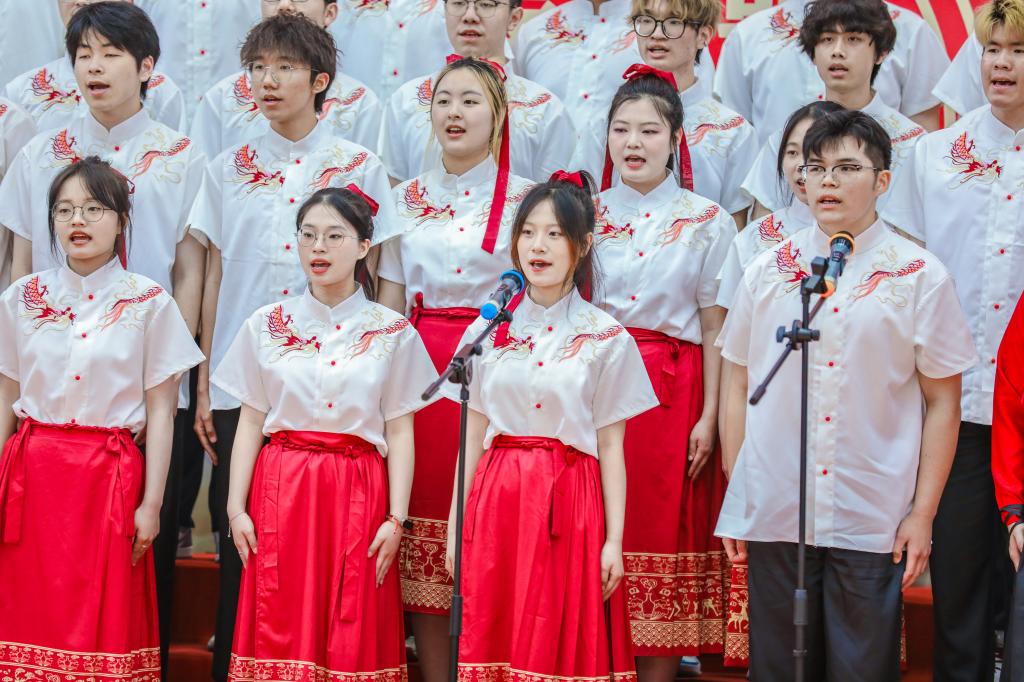 最后,经过评分统计,学校党委书记沈燕华为最佳风尚奖、最佳创意奖、最佳表演奖的合唱队代表颁奖。活动在全体师生合唱的《天行健》中圆满落幕。