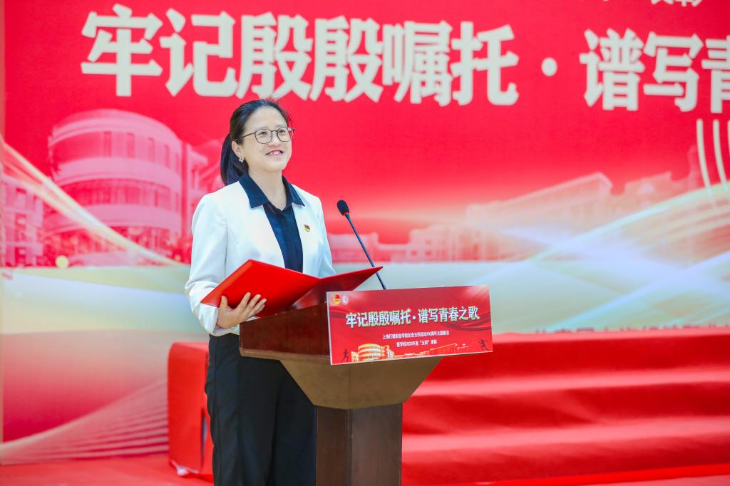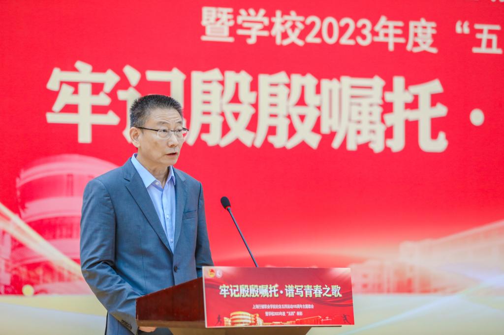 活动在庄严雄壮的义勇军进行曲中拉开序幕。首先,学校党委书记沈燕华为活动致辞。她代表学校党委向莅临本次大会的各位来宾表示诚挚欢迎,向长期工作在一线的全体团干部、关心和支持行健共青团工作的团市委、团区委领导们表示衷心的感谢,向受到表彰的先进集体和个人表示热烈的祝贺。她指出,学校党委将一如既往代表广大青年、赢得广大青年、依靠广大青年,全校上下要充分信任青年、热情关心青年、严格要求青年,并向全校青年提出三点要求,一是坚守理想、笃定信仰,做“胸中有梦”的有志青年;二是励志勤学、刻苦磨炼,做“脚下有力”的踏实青年;三是踔厉奋发、守正创新,做“肩上有责”的奋斗青年,努力成长为发展新质生产力的行动主体,成为驱动中华民族加速迈向伟大复兴的蓬勃力量。