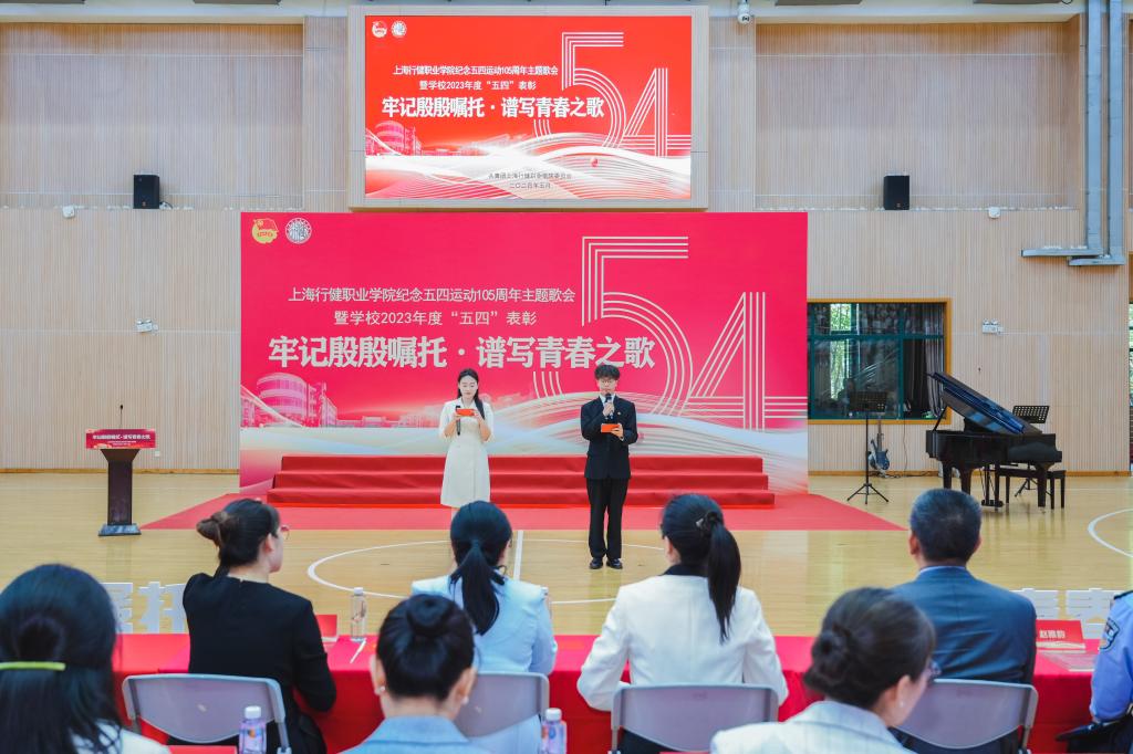 5月17日,安博在线登录官网纪念五四运动105周年主题歌会暨学校2023年度“五四”表彰活动在体育馆隆重举行。团市委学校工作部相关同志、团区委副书记杨光、学校党委书记沈燕华、学校校长黄群、学校党委副书记李越、学校副校长顾斌、静安公安分局团委副书记赵雅韵、彭浦镇派出所团支部书记周昊,以及学校相关部门的领导、师生出席本次活动。本次活动由创意安博(中国)朱祎伦和商贸安博(中国)金灿同学主持。