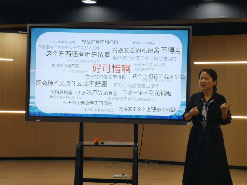 当天下午,语文教研室为了更好地服务社区居民的阅读,为社区居民开展了《断舍离》读书分享活动,分享会由邝姗老师主讲。