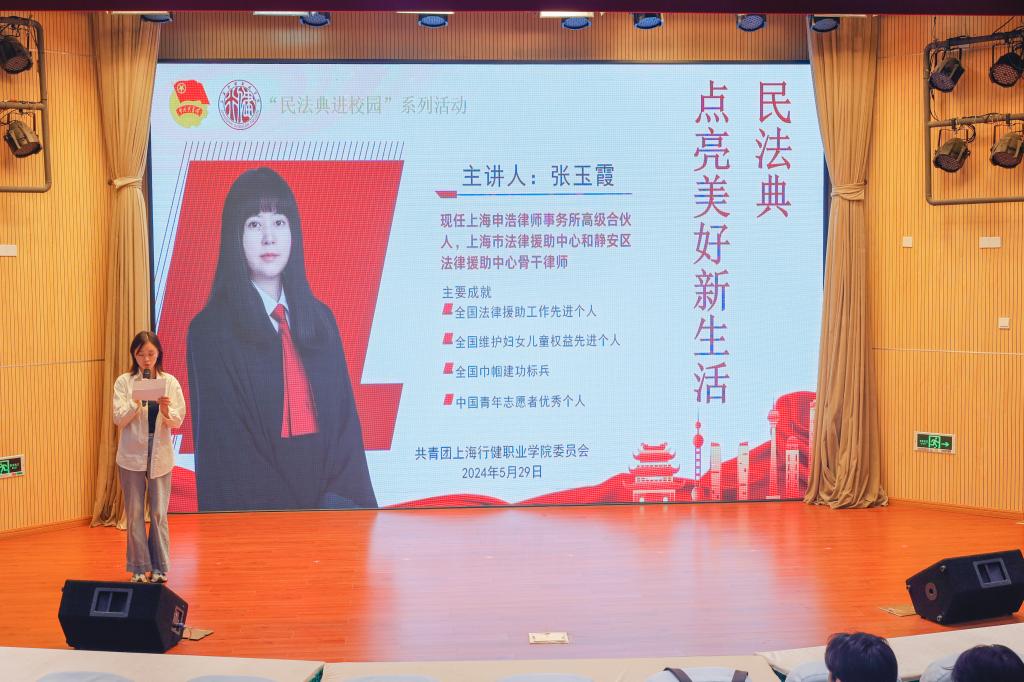 2024年5月是我国第四个“民法典宣传月”。为增强学生知法、守法、学法、用法的法治观念,使民法典学习宣传常态化、普及化,学校积极响应市教委“民法典进校园”活动要求,于5月29日特邀请上海申浩律师事务所张玉霞律师为学生们开展《民法典 点亮美好新生活》专题讲座。