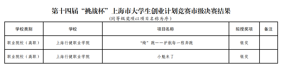 由共青团上海市委员会、上海市教育委员会、上海市人力资源和社会保障局、上海市科学技术协会、上海市学生联合会共同主办的第十四届“挑战杯”上海大学生创业计划竞赛中,我校“‘绮’跑--护航每一程奔跑”、“小魁来了”两个项目获市赛银奖。