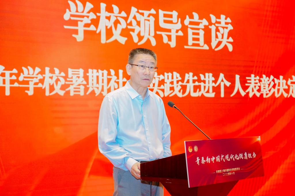 汇报会中,学校党委副书记李越宣读了《2024年学校暑期社会实践先进个人表彰决定》。学生处处长谭可、教务处处长公晨为社会实践先进个人和上海书展、爱心暑托班的优秀志愿者颁发荣誉证书。