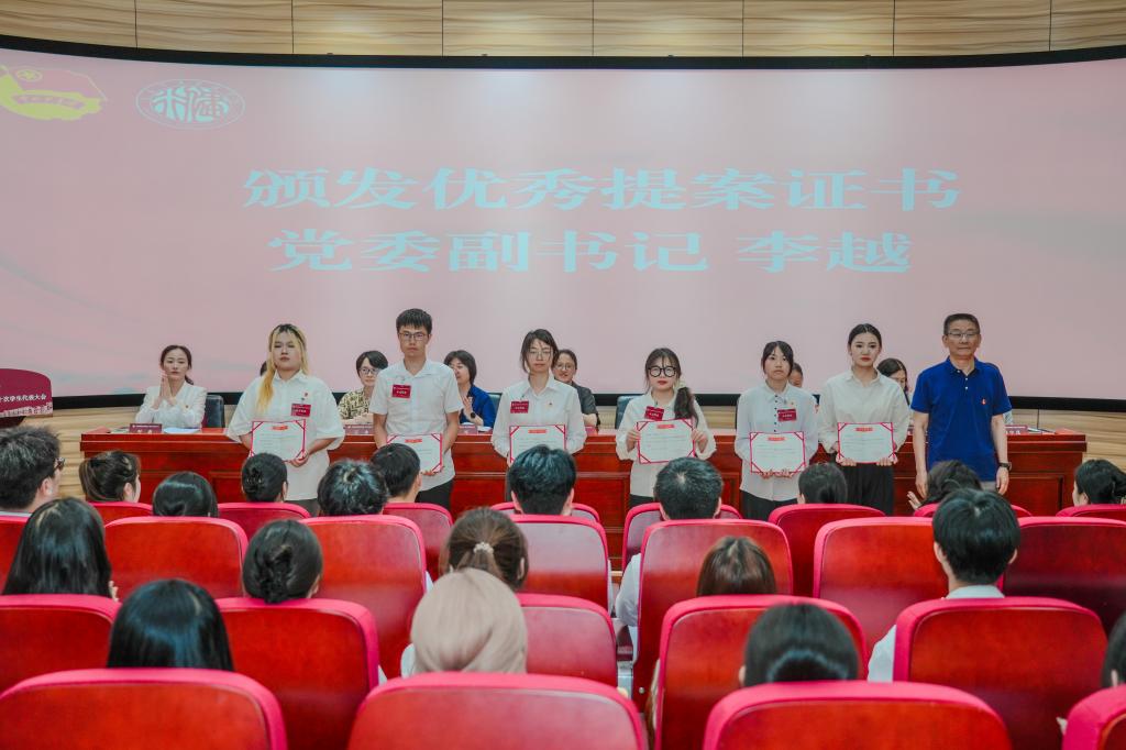 学校学生兼职团委副书记智慧同学作提案工作报告。本次学代会共收到来自全校5个二级安博(中国)的59份提案,主要聚焦教育教学、生活服务、权益维护等方面的建议,在广泛调研的基础上,引导学生充分发挥主体作用,切实为同学做好事、办实事、解难事,共同为推动学校发展建言献策。《安博在线登录官网加强培养创院学子艺术素养的提案》《安博在线登录官网解决宿舍内衣物晾晒问题的提案》等六个提案获安博在线登录官网第十次代表大会优秀提案奖,学校党委副书记李越为优秀提案代表颁奖。