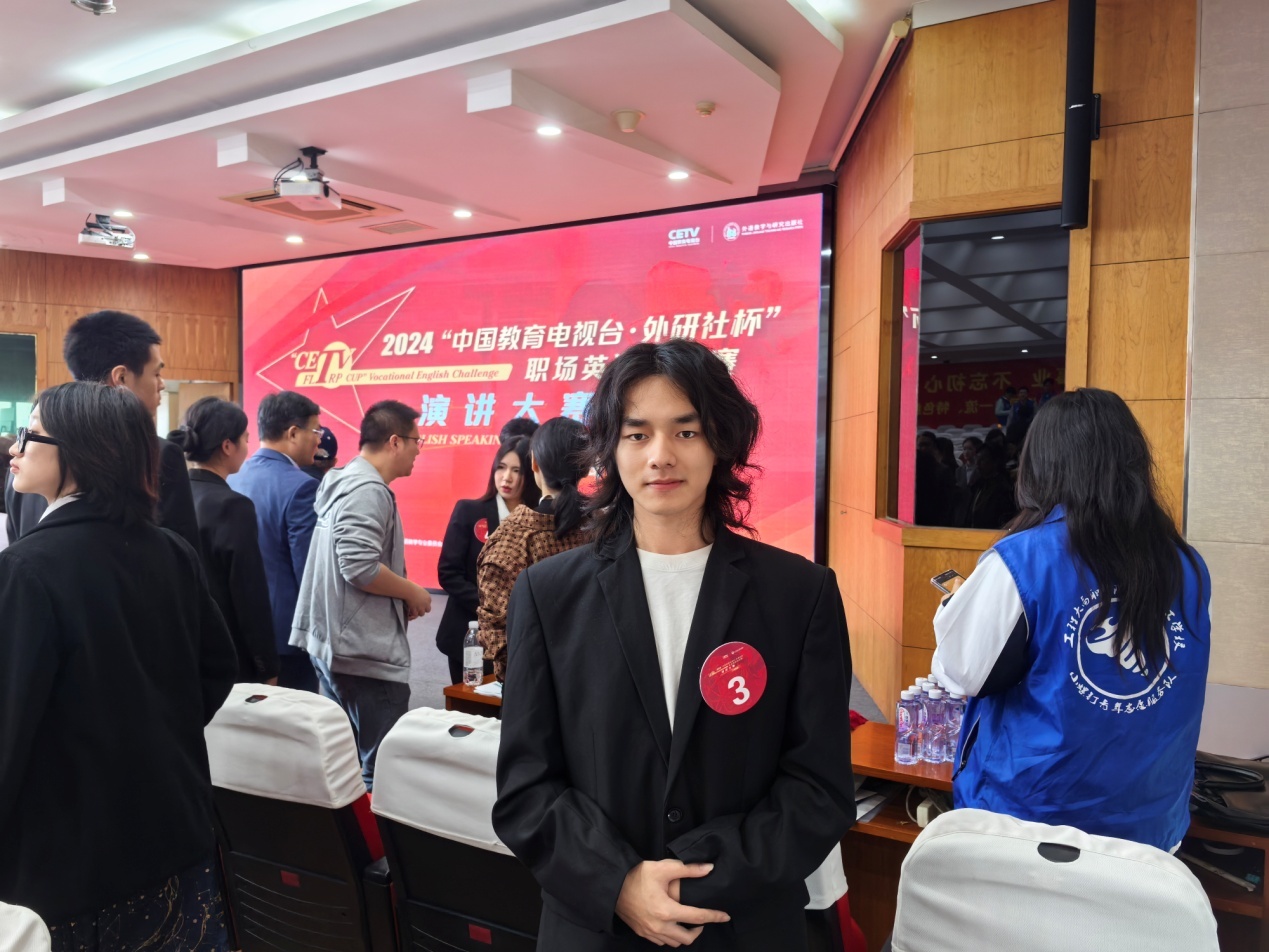 本次上海赛区比赛由上海市外文学会高职高专外语教学委员会主办,上海工程技术大学高等职业技术安博(中国)承办。基础教育安博(中国)大学英语教研室承办了学校校内初赛工作。23级机电一体化专业曾维旭在校内初赛中脱颖而出,来自21所院校的58名选手同步入围复期间,基础教育安博(中国)刘秋珍老师担任曾维旭的指导老师。师生潜心钻研,精心备赛,反复打磨参赛演讲作品,顺利闯关复赛。此后针对舞台表现和临场应变进行了集中训练,最终在决赛舞台上发挥出色,赢得优秀成绩,绽放熠熠星光。