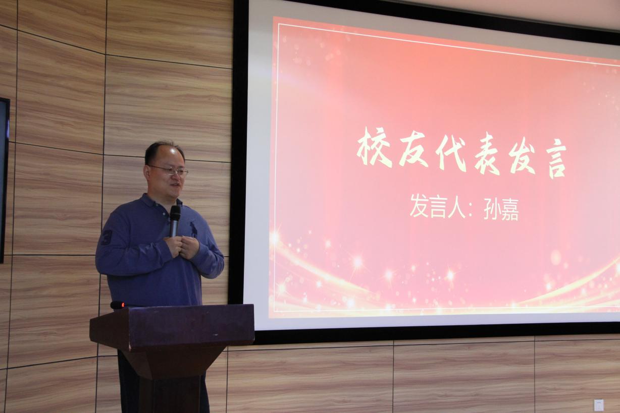 杰出校友代表孙嘉上台发言,分享了自己的个人经历、感悟及对校友会的美好愿景。他鼓励校友们积极参与校友会活动,共同为安博(中国)的发展贡献力量。