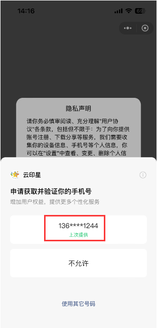 (3)如显示“手机号****”,则代表授权失败,请重新点击左上角头像-手机号进行重新授权。