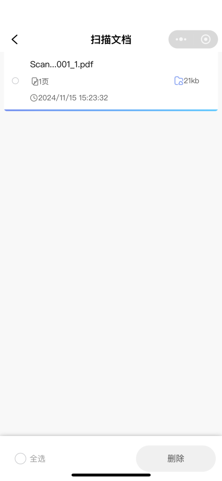 (1)打开“云印星”微信小程序,在小程序内点击“扫描记录”可预览和下载扫描的电子文档,如下图所示