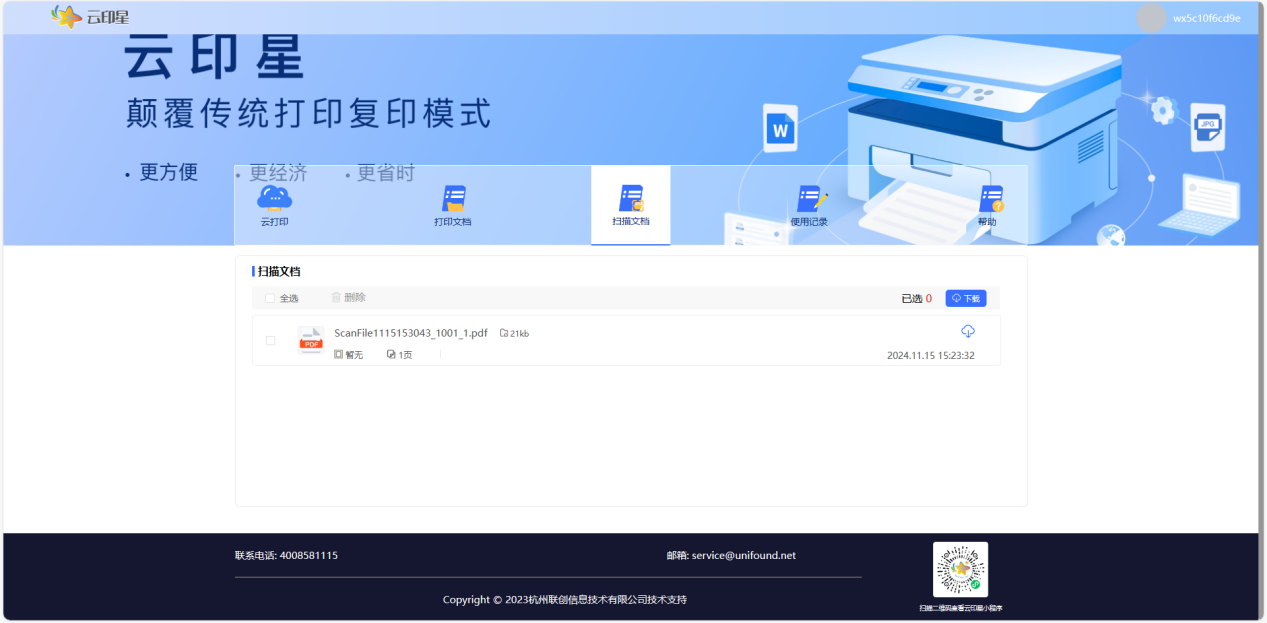 (2)登录成功后,点击“扫描文档”,可查看并下载所扫描的文件,如下图所示