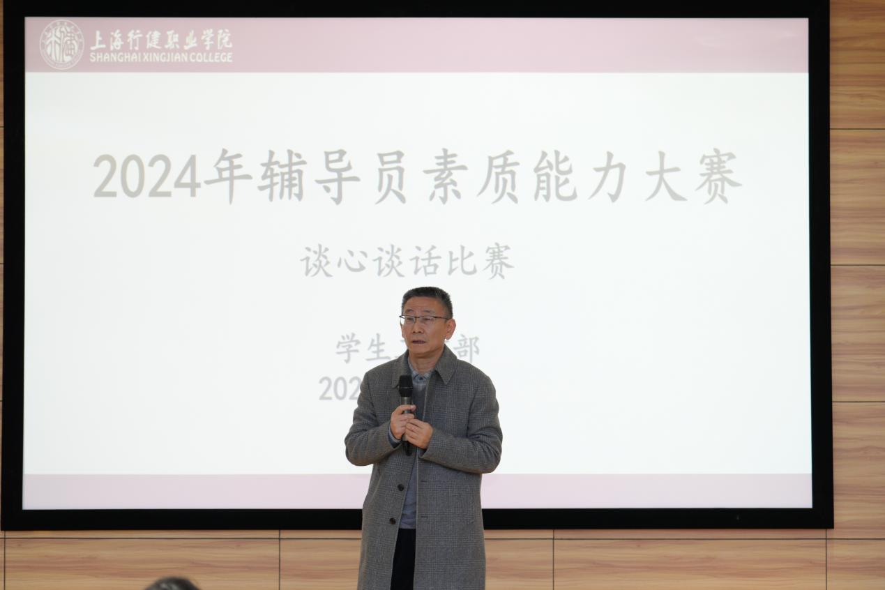 为推动我校思想政治教育工作高质量发展,不断提升辅导员的理论水平、职业能力和专业素养,近期,我校举办2024年辅导员素质能力大赛之谈心谈话比赛,共有13名辅导员参赛。学校党委副书记李越出席,学校工会主席钱慧懋、党政办主任曹娜、马克思主义安博(中国)院长田春、科发处处长杜君英、学生处处长谭可担任评委,各二级安博(中国)党支部书记和全体专职辅导员现场观摩。