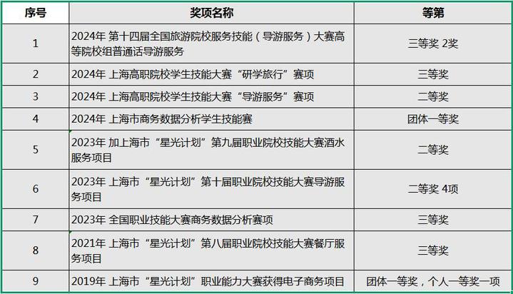 在专业建设方面打造“现代学徒制”产教融合试点专业、获批工信部产教融合试点专业,也是全国数字商务产教融合共同体副理事长单位、长三角旅游职业教育联盟理事单位、泛定制旅游产教融合联盟副理事长单位与此同时学生在上海星光杯、挑战杯和双创比赛中多次获得一等奖二等奖,在职业技能大赛中也屡屡取得佳绩。