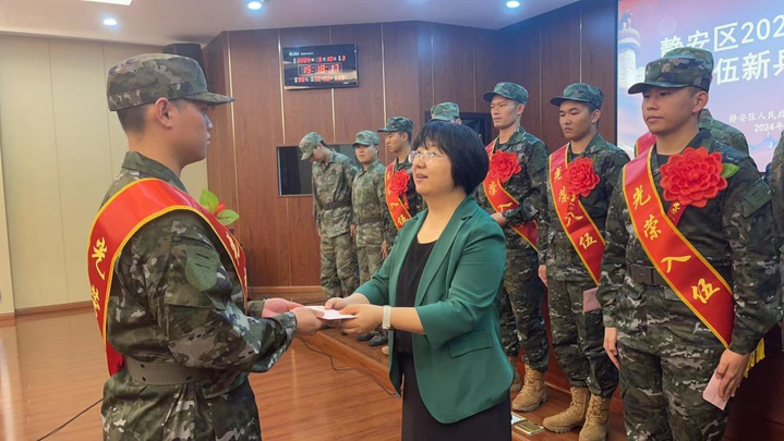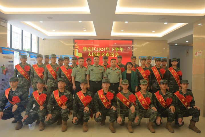 9月18日,静安区2024年下半年入伍新兵欢送会在静安区人武部大礼堂举办,我校14名应届毕业生以满腔热血响应国家征召,光荣地加入了人民军队。他们身着崭新的军装,胸戴鲜艳的红花,脸上洋溢着青春的朝气和对未来的无限憧憬。静安区人武部大校部长戴建平、静安区人武部大校政委陈志忠、静安区人武部上校副部长蒋学峰、我校武装部部长谭可及新兵家长参加此次大会。