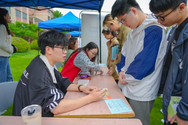 随着礼炮声响起,活动正式开始。本次心理游园会活动是我校2024年心理健康月系列活动的第一站,现场共设立10个活动体验区,活动形式丰富多样,涵盖心理健康教育多个方面的内容。“OH卡牌”“房树人测试”“沙盘游戏”3个心理投射测试体验区运用专业的心理投射测试让学生通过卡牌解读、绘画、创造沙盘世界的方式与自己进行对话,了解自己的人格特质,挖掘个人潜能;“与爱同行”“心海拾贝”“摸石过河”“时间胶囊”等7个游戏互动体验区通过精心设计的游戏和挑战,激发了参与者的合作和竞争意识。