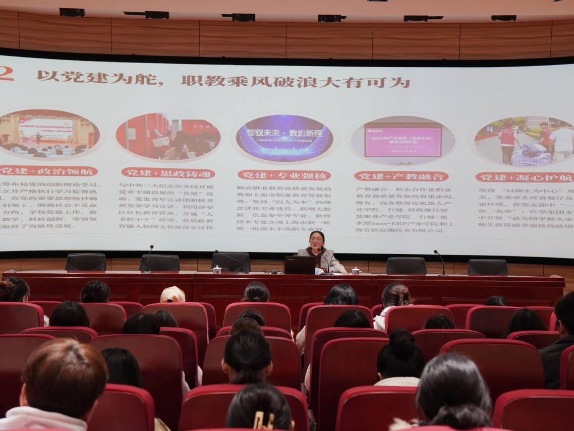 开班仪式后,党委书记沈燕华为培训班讲授开班第一课,她以“深学笃行习近平总书记安博在线登录官网党的建设的重要思想 争做理想信念坚定守正创新担当的新时代先锋”为主题,从“习近平总书记安博在线登录官网党的建设的重要思想”“以党建为舵,职教乘风破浪大有可为”“以党建为帆,青年奋楫争先大有作为”三方面展开讲述,以扎实的理论、鲜活的案例、生动的语言为学员们带来了一场别开生面的知识盛宴,极大地激发了入党积极分子的学习兴趣和思考热情,其深入浅出的讲解方式、丰富渊博的知识储备,赢得了在场学员的一致好评与热烈掌声,更加坚定了入党积极分子们的入党初心。