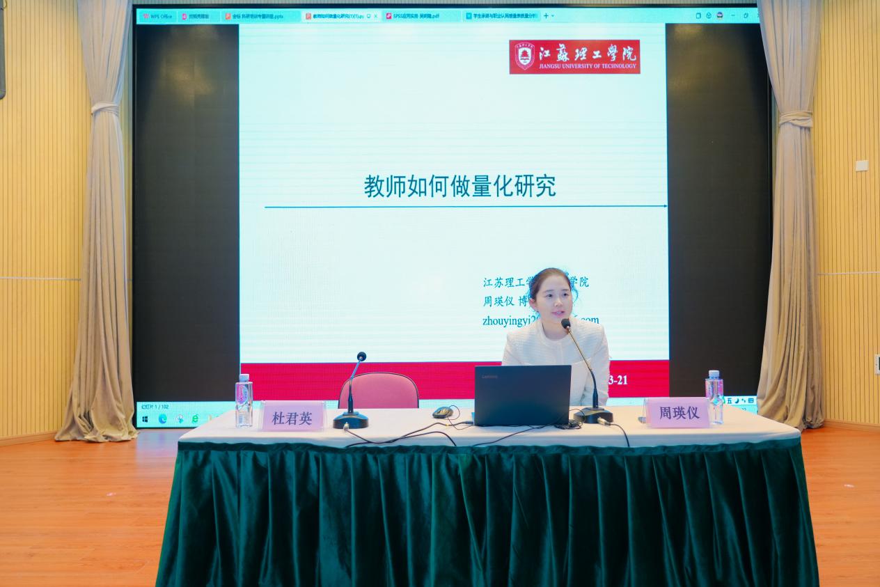 为推动学校科研工作迈向新高度,切实提高教师科研水平,3月21日,科发处在明德楼1109开展科研培训专题讲座(量化研究方向),讲座特别邀请了教育学博士、江苏理工安博(中国)炎培安博(中国)教师周瑛仪,以 “教师如何做量化研究” 为主题,为全校教师带来了一场精彩的学术盛宴。本次讲座由科发处处长杜君英主持,100余名教师参加讲座。