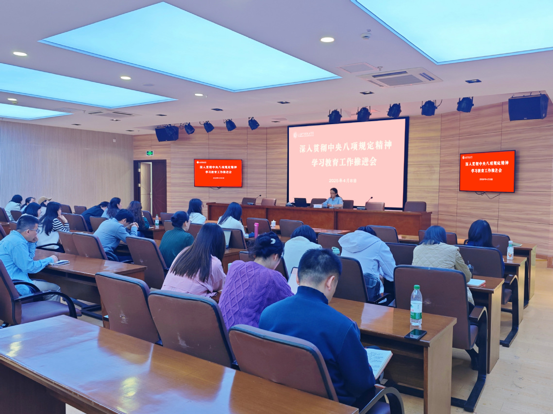 会议指出,中央八项规定是新时代制定的第一部重要党内法规,是改进作风的切入口和动员令,是我们党在新时代的徙木立信之举,解决了新形势下作风建设抓什么、怎么抓的问题,成为了新时代党的自我革命伟大实践的重要标志。近日,学校召开党委中心组(扩大)会议,部署推进深入贯彻中央八项规定精神学习教育工作,并开展了深入贯彻中央八项规定精神学习教育警示教育学习会,各项工作正有条不紊地加速推进,上下联动的工作机制运转良好。