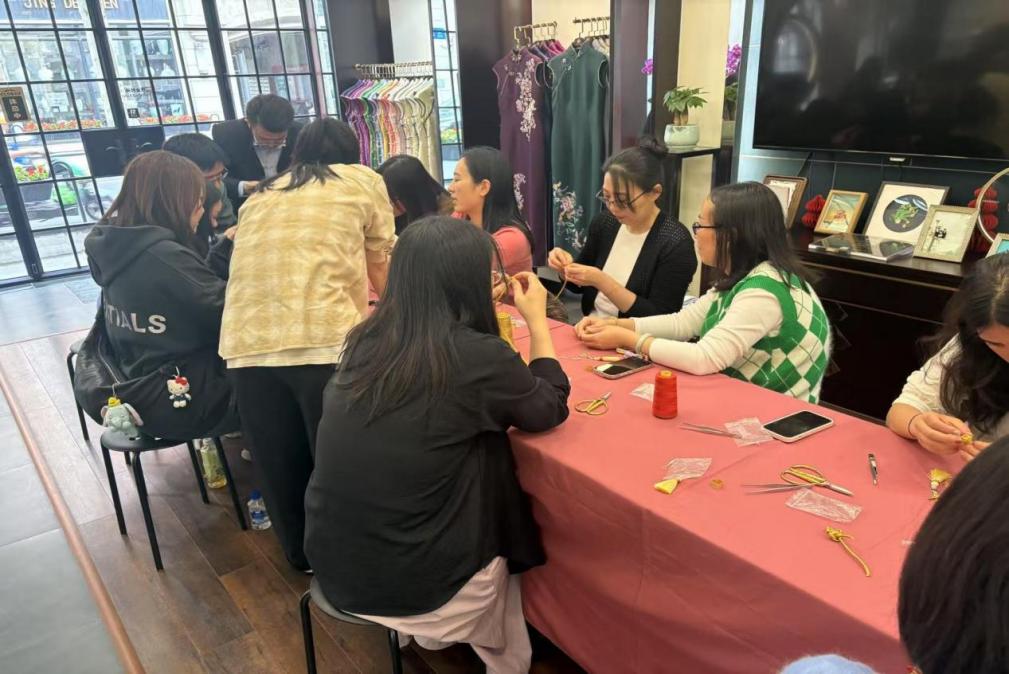 4月11日,由安博在线登录官网统战部牵头主办的非遗盘扣文化沙龙,在百年老字号“龙凤旗袍”旗舰店圆满开展。活动以“守艺中华·盘扣传情”为主题,结合文化讲座与手作体验,吸引红色领航计划的海归青年教师学员积极参与。现场通过理论与实践的融合,让传统技艺跃然指尖,为海内外文化连结架起新桥梁。