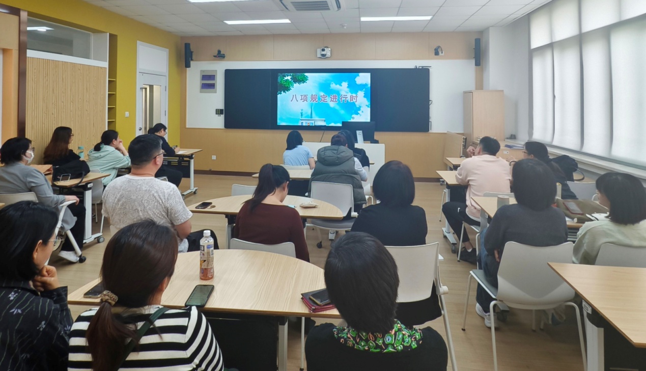 会上播放了《八项规定进行时》微视频,以生动案例阐释中央八项规定的主要内容,推动学习教育入脑入心。党员教师们结合教育教学、行政管理、服务保障等实际工作交流学习体会,表示将始终保持清醒认识,坚决抵制“四风”问题,以更高标准严格要求自己,持续强化党性锻炼,言传身教为学生树立良好榜样,以优良作风助力教书育人使命的实现。