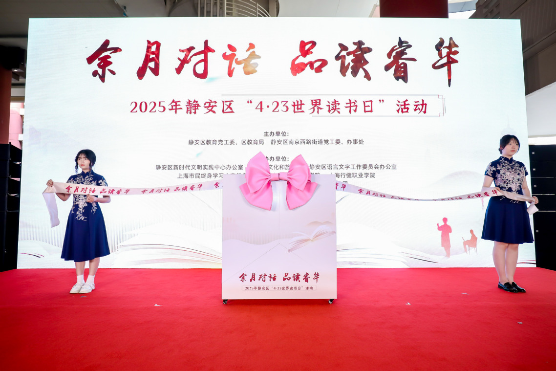 在第三十个世界读书日到来之际,为扎实推进本区学习型城区建设,营造“书香静安”浓厚氛围,4月23日下午,2025年静安区“4·23世界读书日”活动在上海商城展览大厅隆重举行。此次活动由静安区教育党工委、区教育局、南京西路街道党工委联合主办,我校作为协办单位之一。市教委副主任叶霖霖、区委副书记徐静、市教委终身教育处处长闫鹏涛、我校校长黄群、区学促委各成员单位相关领导、市民代表等出席活动。